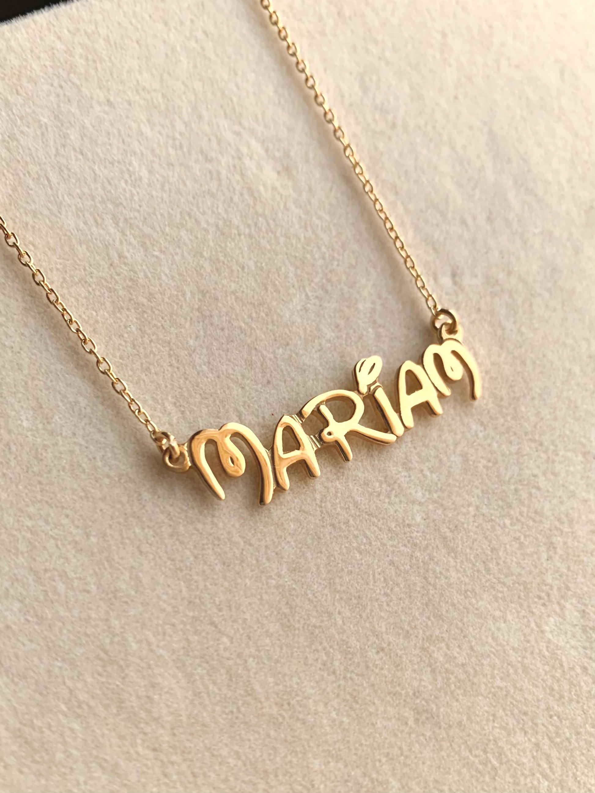 قلادة اسم قابلة للتخصيص من الفضة الإسترلينية مطلية بالذهب عيار 18 قيراطًا. يمكنك تخصيصها باسمك واسم الشخص المفضل لديك.